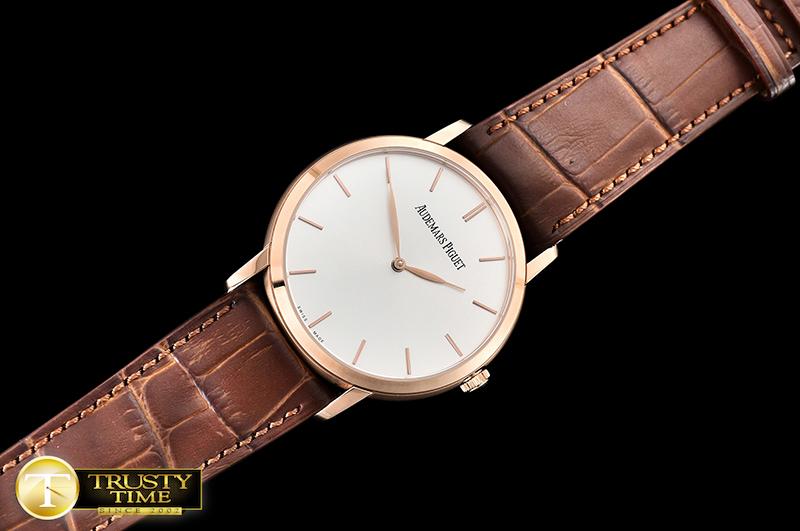 MOVEMENT: Nickel Plated Japanese Miyota 9015 Automatic with Fully Decorated Rotor and Bridges & Plates to look like AP Caliber 2120