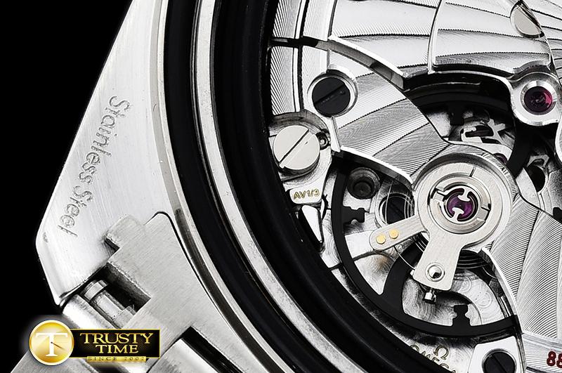 MOVEMENT: Platinum Plated A8900 Automatic, Decorated insignia rotor, All markings of Omega Calibre 8900 present