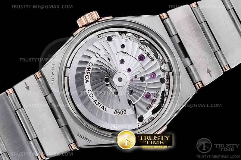 MOVEMENT: Platinum Plated A8500 Automatic, Decorated insignia rotor, All markings of Omega Calibre 8500 present