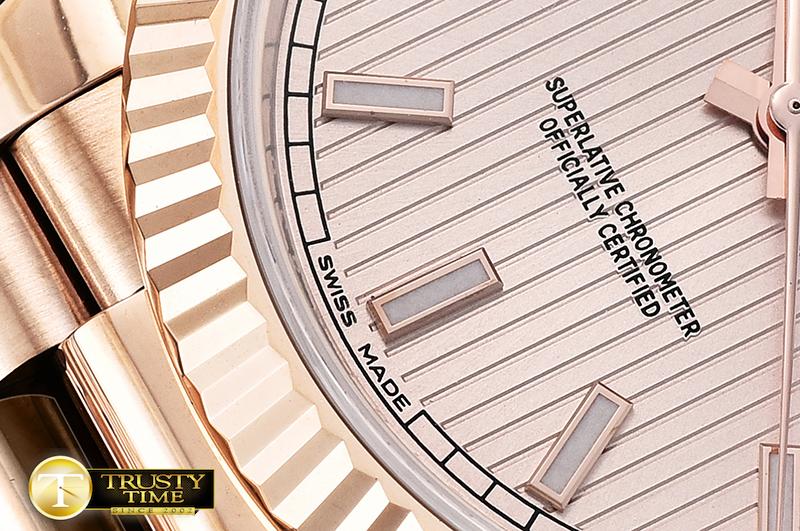 DIAL COLOR: Rose Gold Tuxedo Dial with Lume Stick Markers (With Swiss Grade Superlume in Blue applied)