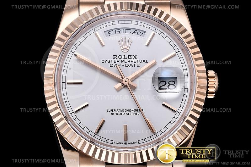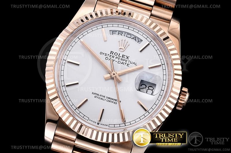 BRACELET: 18K Rose Gold Thick Plated (5 mils) on Solid Stainless Steel 316F Presidential Bracelet with New Style Rolesor Deployant Buckle